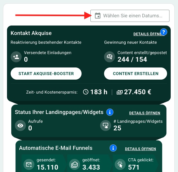 Stellen Sie den Zeitraum so ein, wie Ihre Kampagne gelaufen ist.