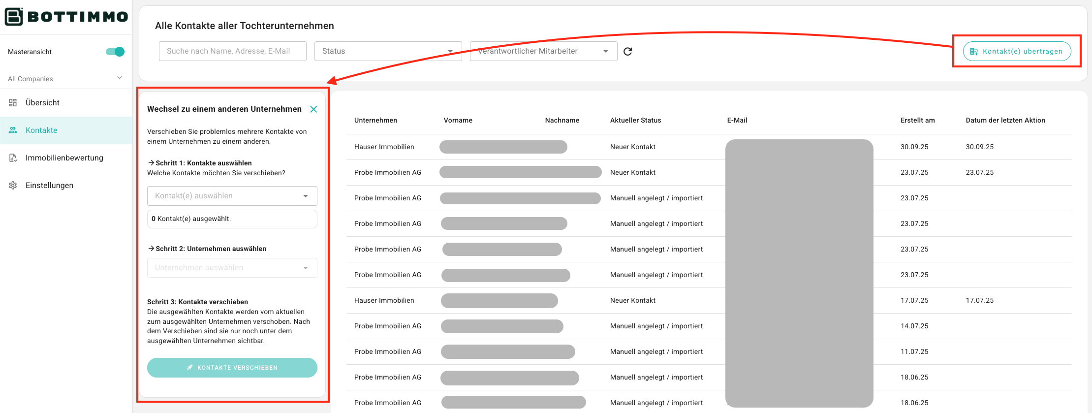 - Kontakte zwischen Master- und Ihren Maklern/Büros hin- und herschieben