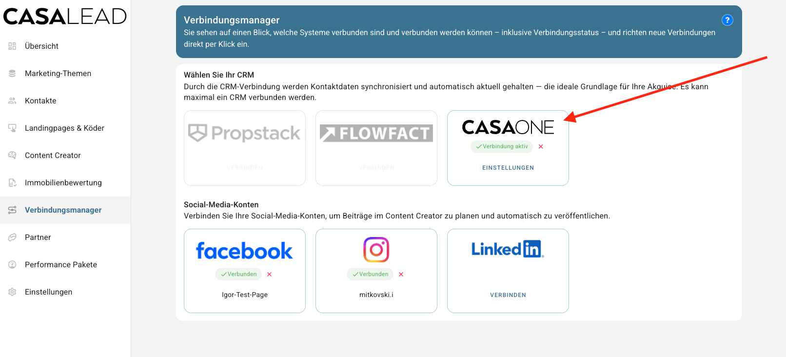 - In the section CRM, you will find CASAONE as a separate tile.