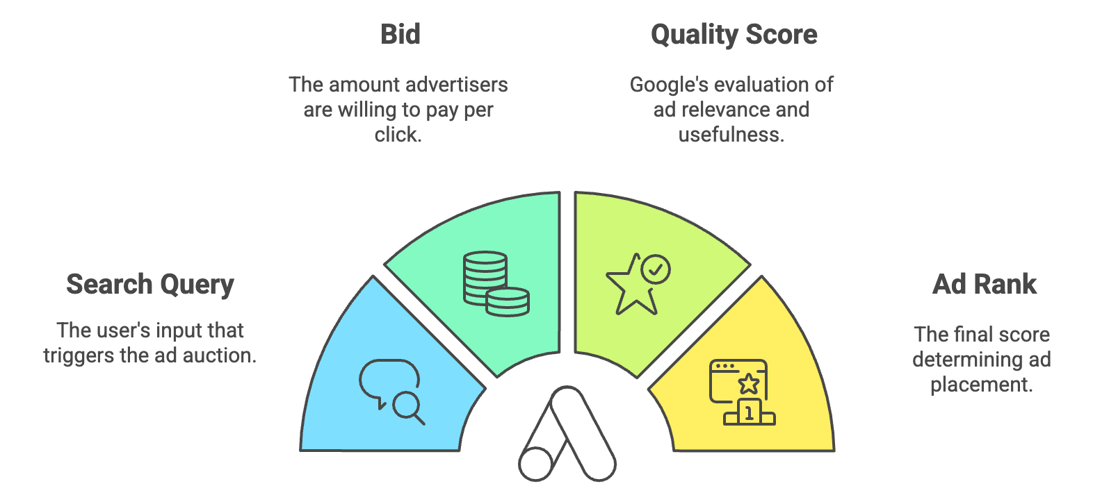 Google uses an auction to decide which ads are shown. This auction takes place within fractions of a second whenever someone enters a search query.